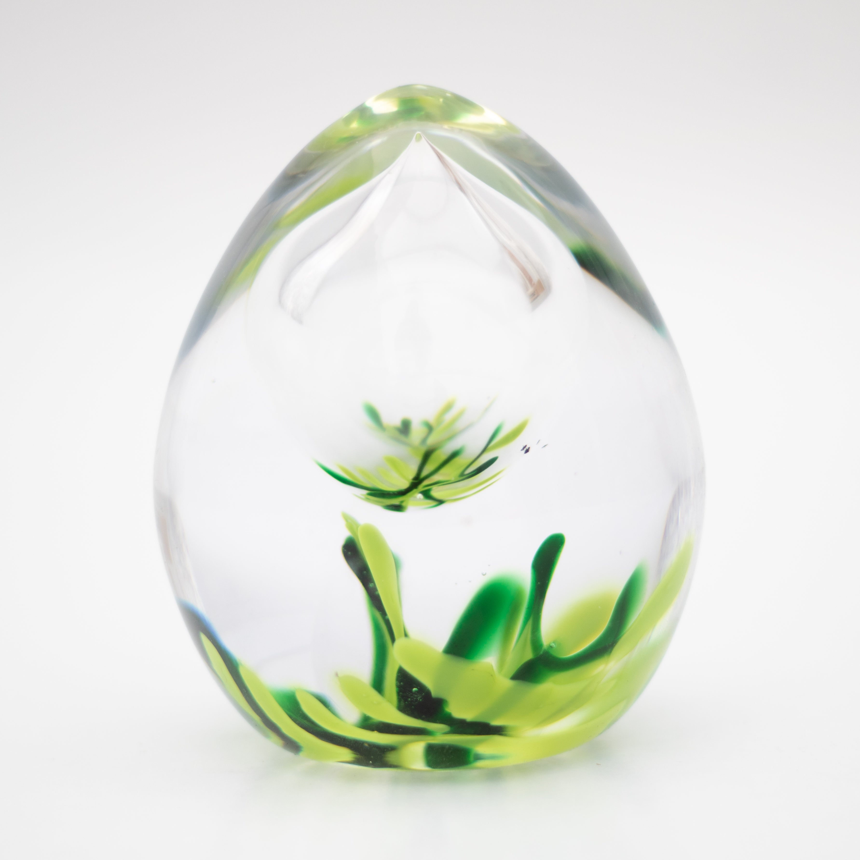 These sculpture's encapsulate a nested image reflection, a beguiling refraction created by capturing a bubble of air within the glass.