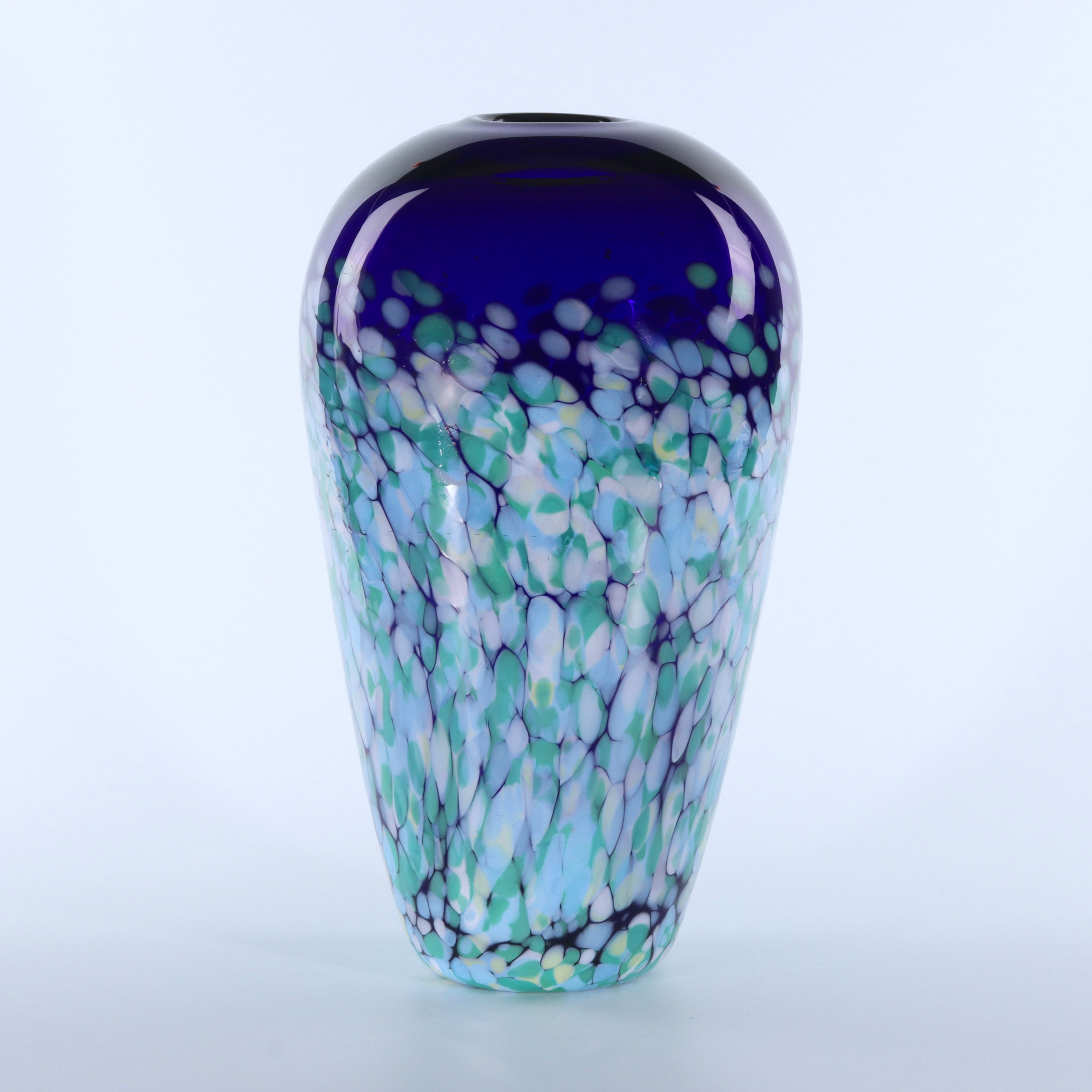 A new take on the original Tranquillity vase - with an opaque fresh water pearl effect of opal, cyan and jade green confetti glass.