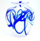 Designed by James Adlington, our founder. This is an elegant, unique vase with blue trails running across its frosted surface, in a painterly fashion. This piece will be a talking point and very collectable. Approximately 21cm tall and, like all of our products, handmade in our factory by James himself. Every piece will be signed by the maker adding providence to every piece.
