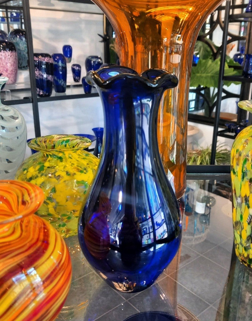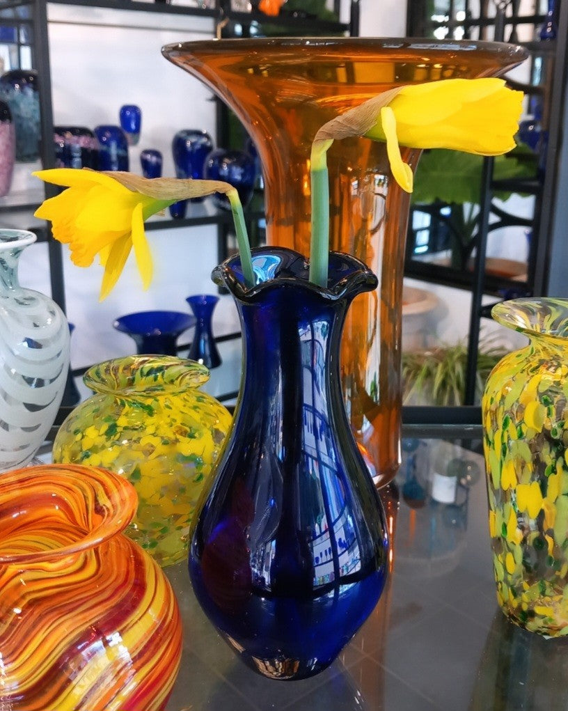 Peruse our beautiful range of glass vases, from traditional Bristol blue to exciting multicoloured combinations. Many shapes and styles can be found here including round , tall, lily and bud vases.