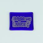 Classic Bristolian "Alright My Luvver?" Bristol blue glass magnet.