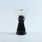 A beautiful work of art and a fantastic glass sculpture of an angel, combining Bristol blue glass and clear glass. The perfect ornament or centrepiece for any room. Handmade and unique. The Angel stands on the base or can be hung from a small hook on the back. Approximately 12cm tall.