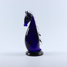 A beautiful representation of a horse head "knight" chess-piece made from a combination of Bristol blue and clear glass.