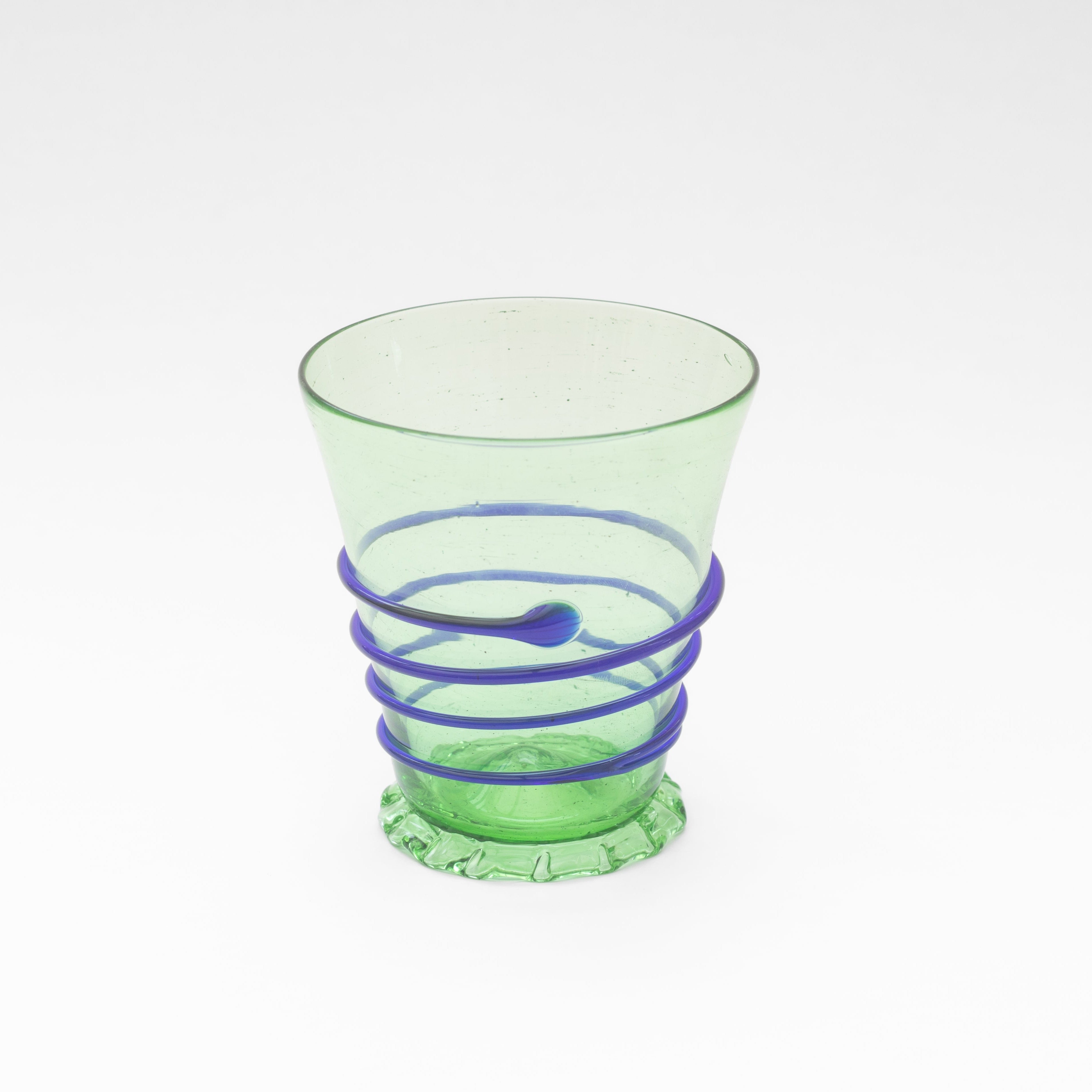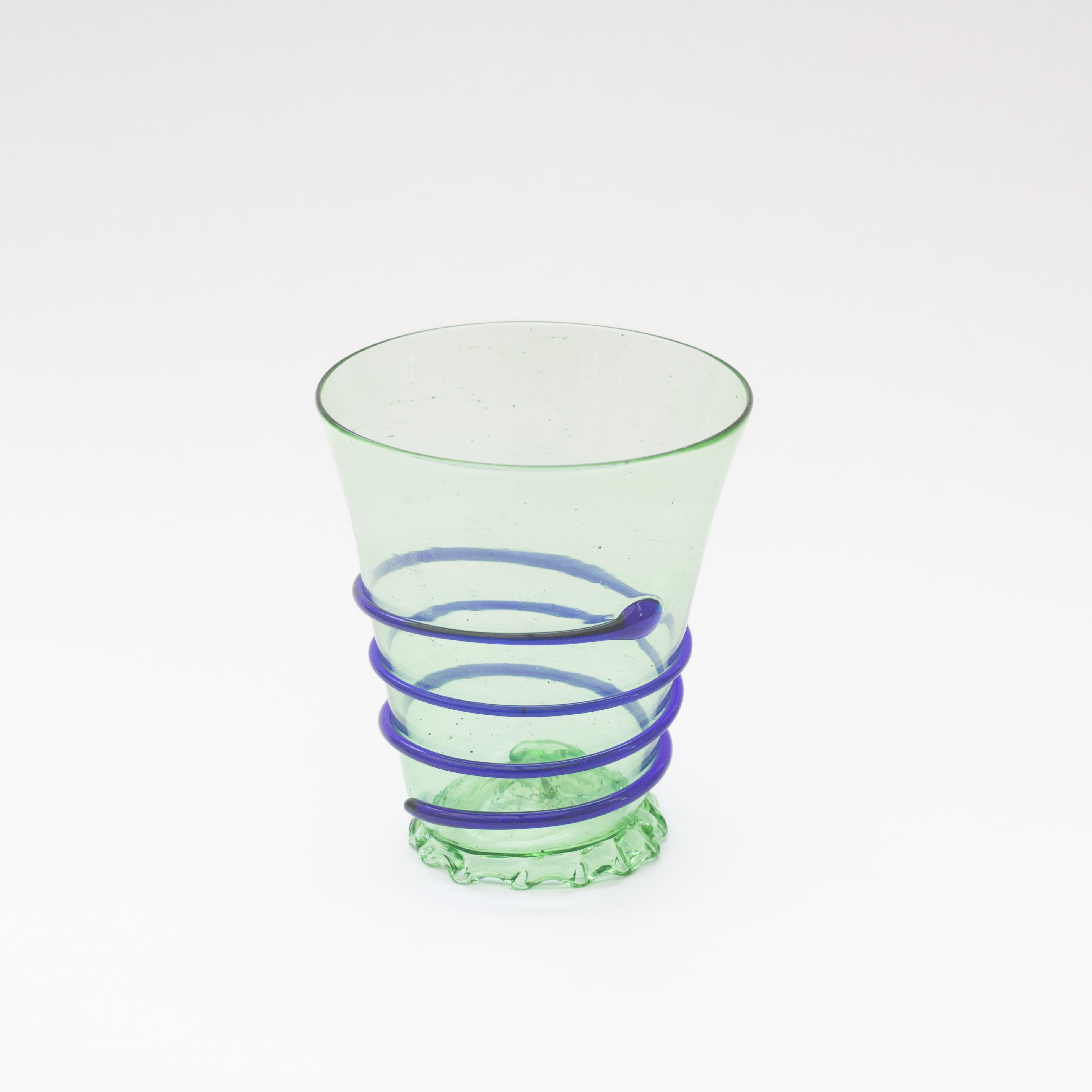 Flared Green Tumbler with Bristol Blue Glass Trail.