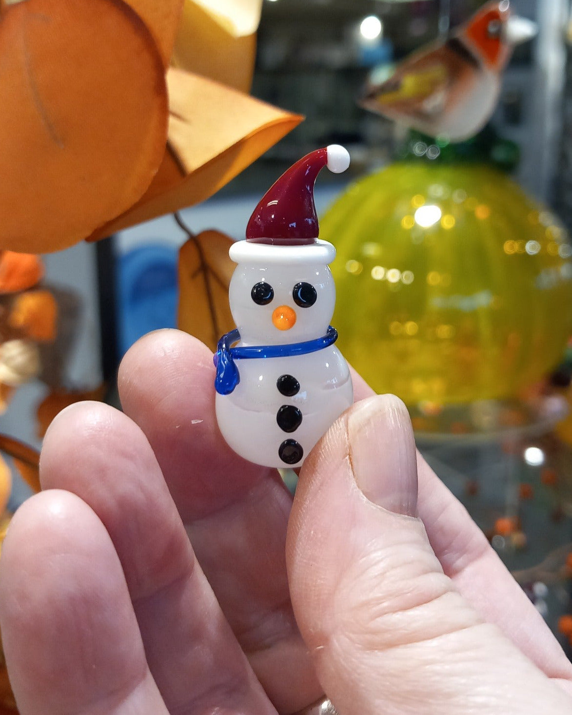 Dinky Christmas Snowman Glass Sculpture