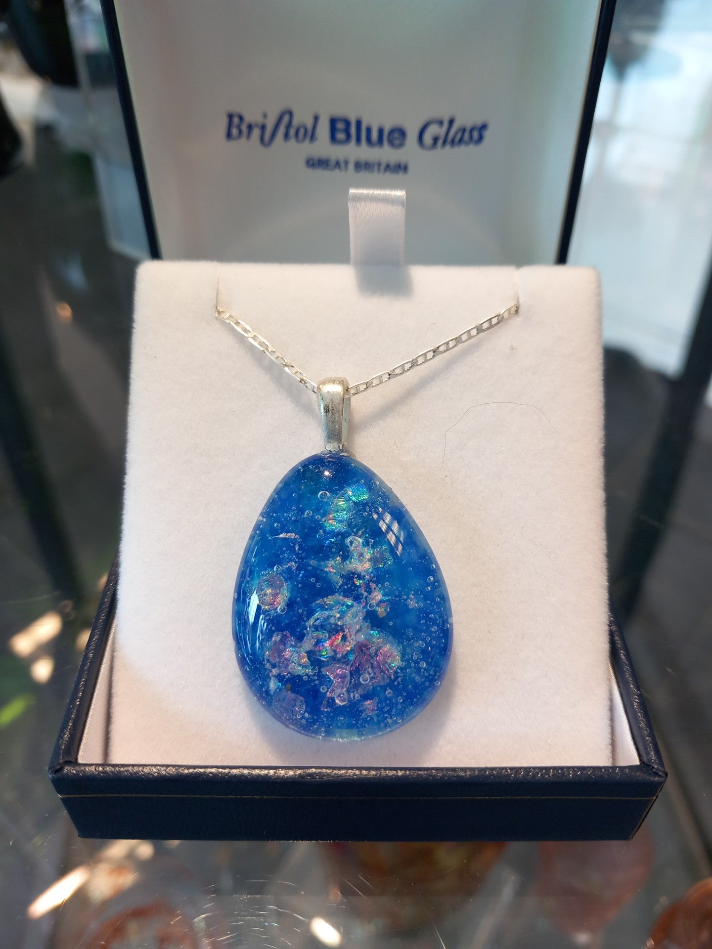 Large Teardrop Blue Dichroic Pendant - Exclusive!