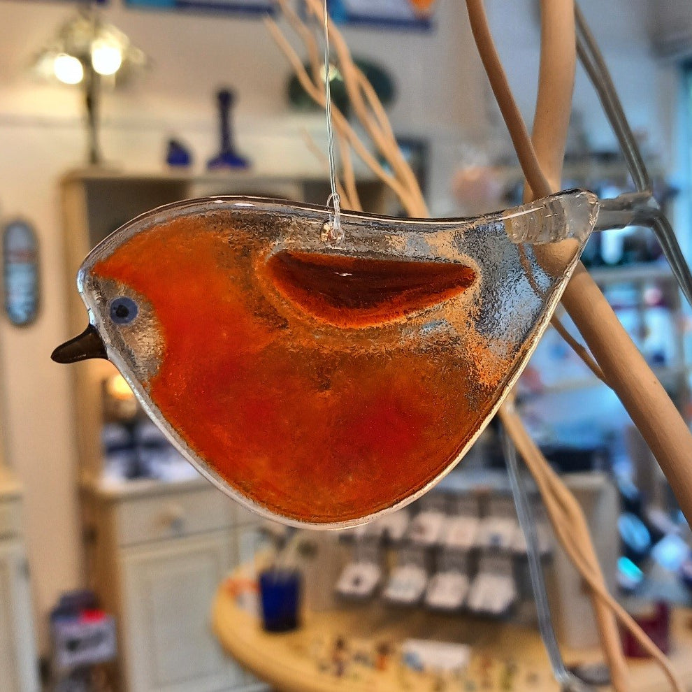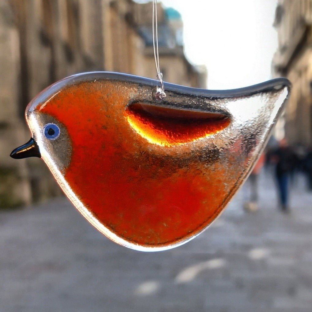 Little Robin Red Breast Fused Glass Decoration... the perfect Christmas Tree Hanging!