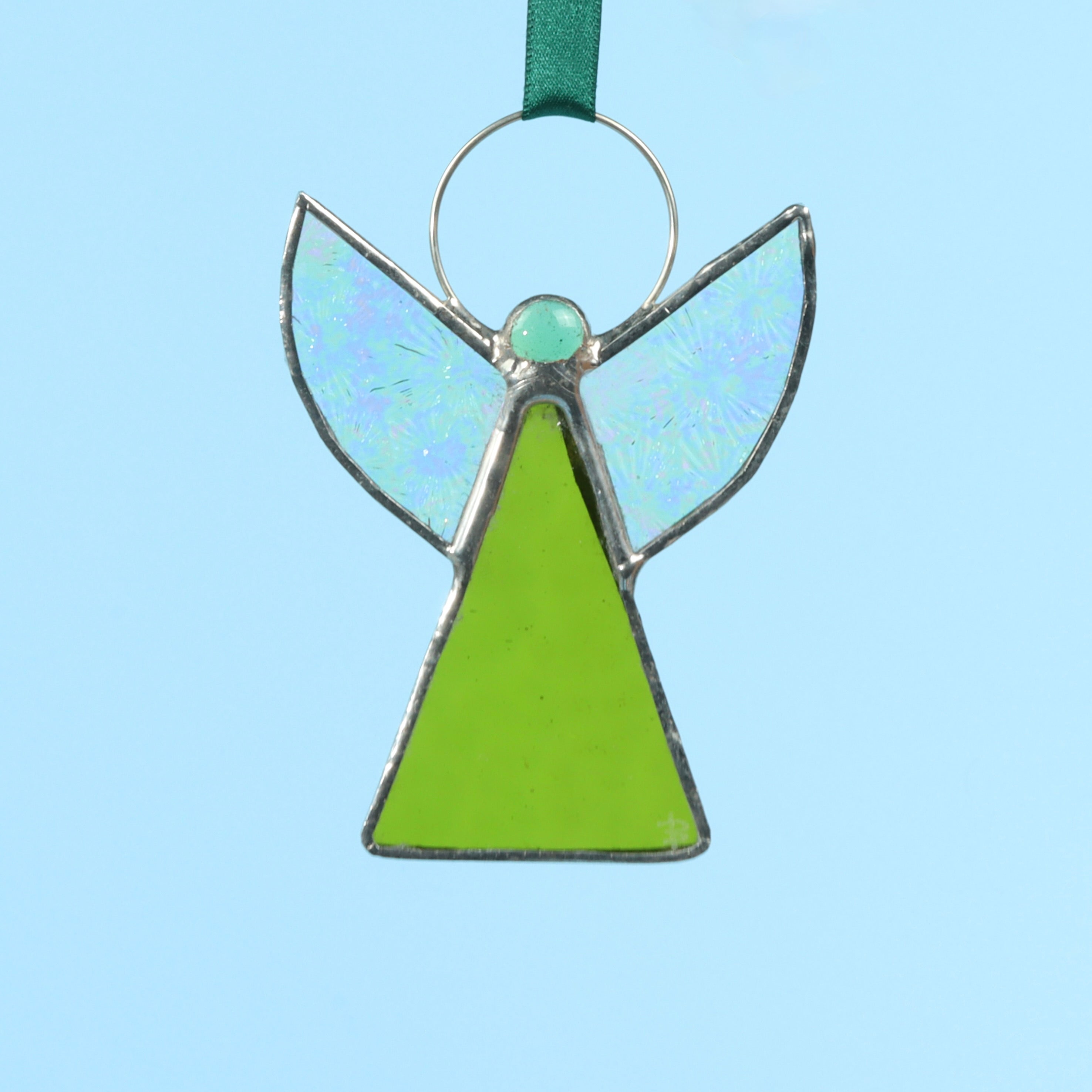 Handmade Small Green Stained Glass Angel... a perfect Christmas Tree Decoration!