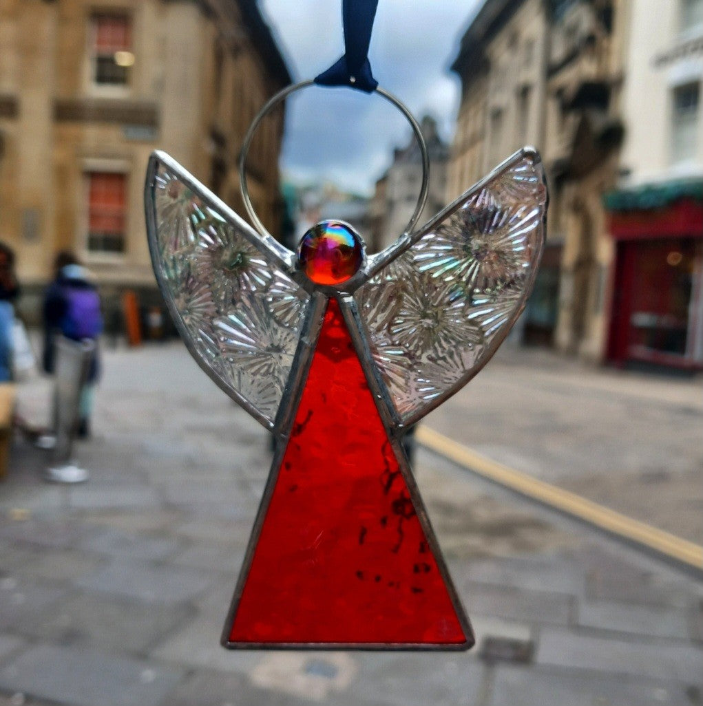 Handmade Small Red Stained Glass Angel... a perfect Christmas Tree Decoration!
