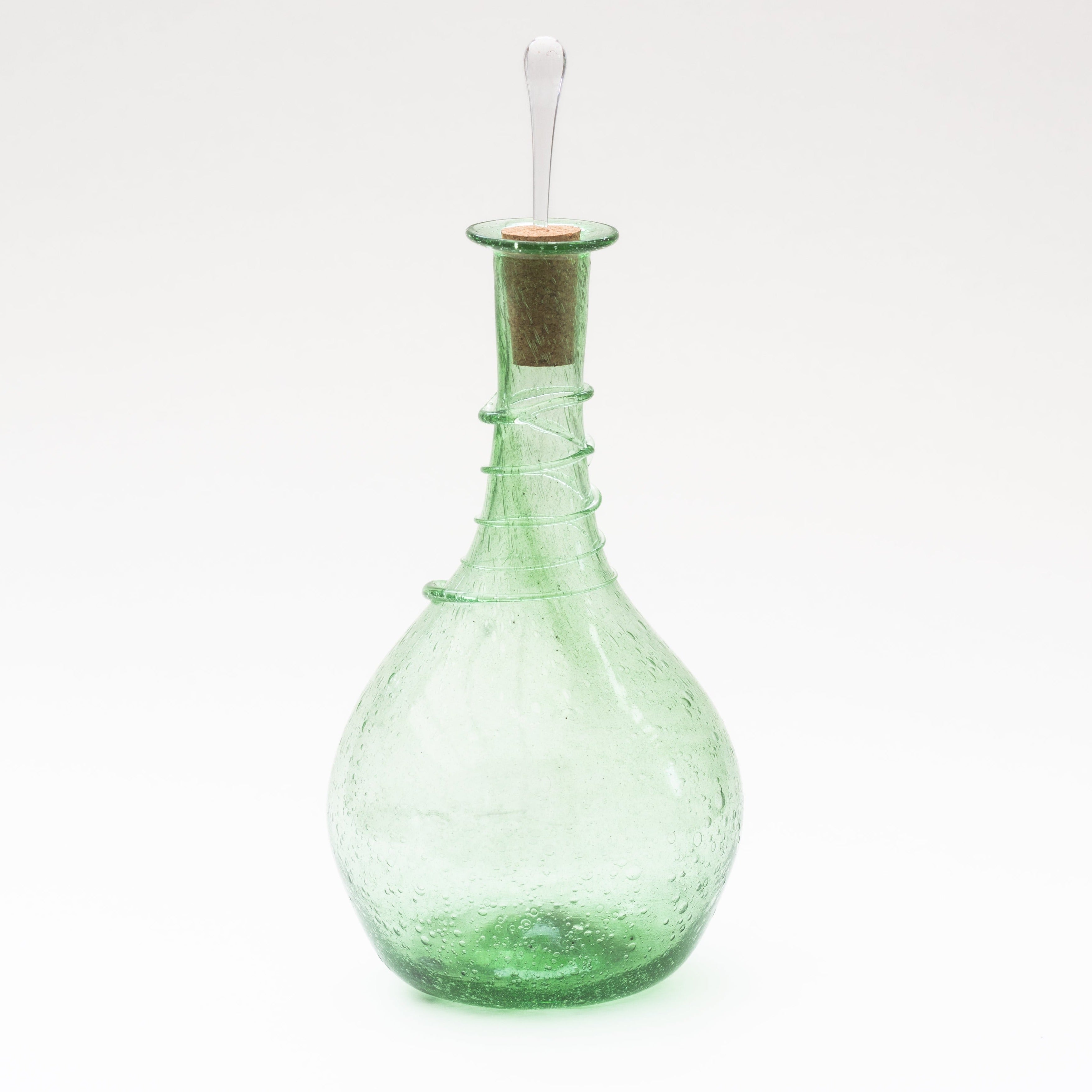Medieval Style Trailed Glass Bottle with Cork and Glass Stopper